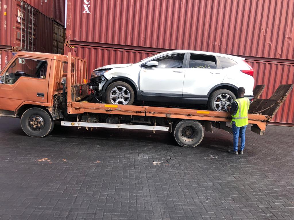 Inspection of cargo at the port before it is loaded onto to a haulage truck